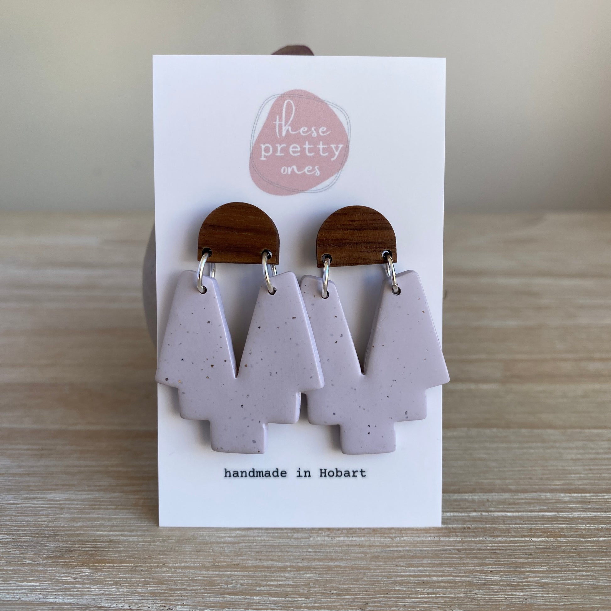 Gorgeous statement dangles in walnut and speckled oat tones. Glam and modern for the neutral lovers.