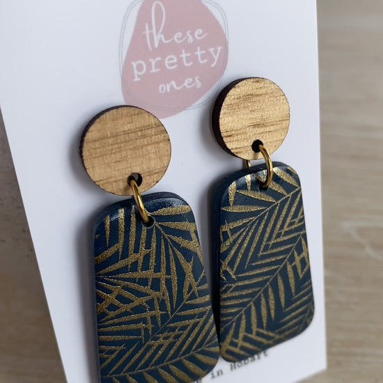 'Navy Jungle' Statement Dangles: Oak