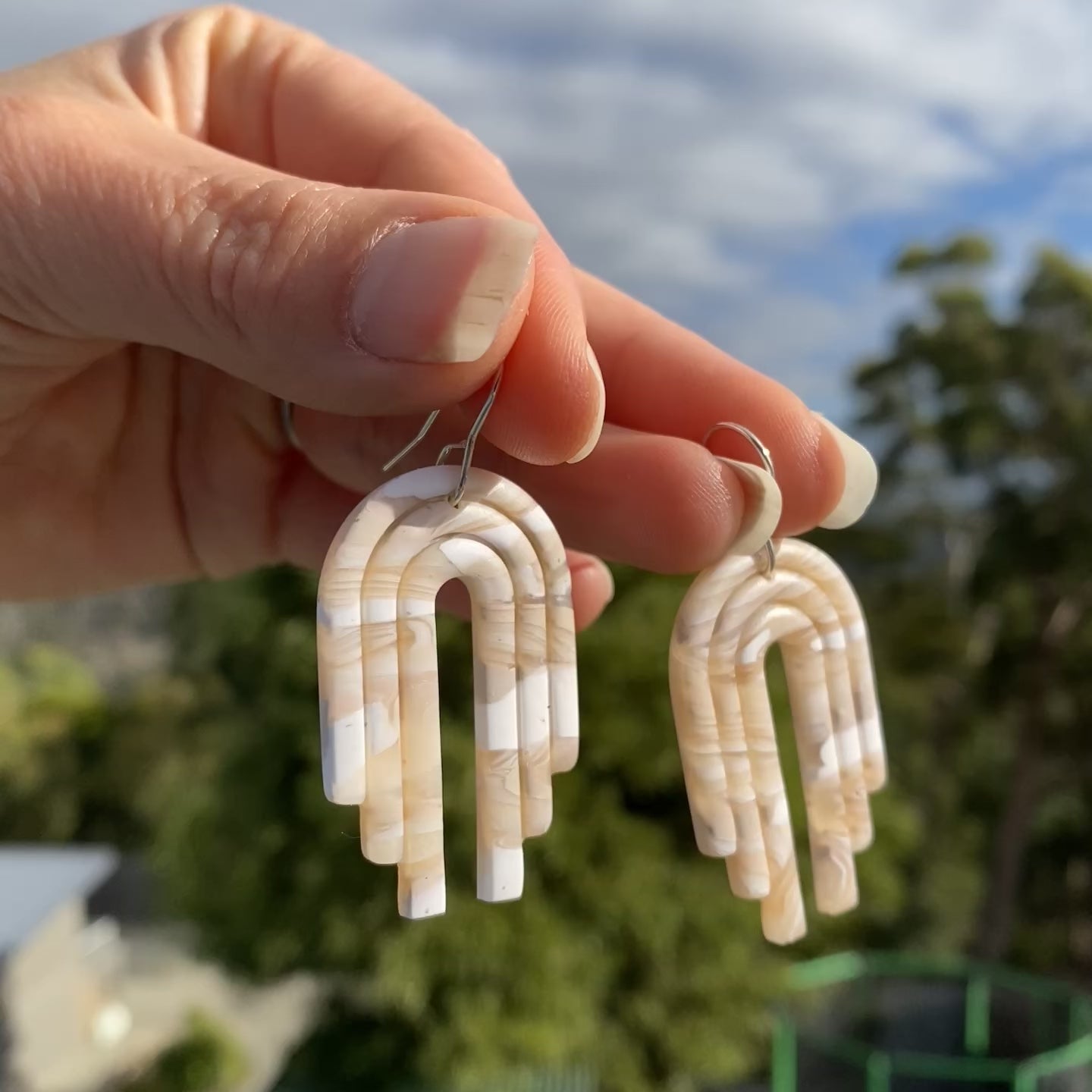 Statement rainbow arches, named for their unique shape. The Oat Marble tones include translucent clay which takes on sunlight in the most beautiful way!